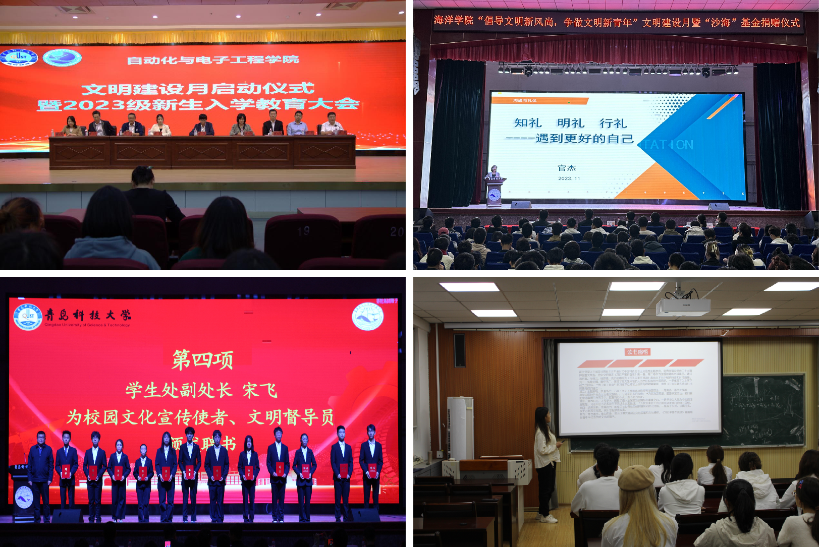 为深入学习贯彻习近平新时代中国特色社会主义思想和党的二十大精神,贯彻落实学校第十一次党代会精神,结合新一轮本科教育教学审核评估相关要求,学校出台《关于开展“倡树文明新风,争做时代新人”文明建设月的通知》,包括“明德知礼、学风涵养、养成教育、安全规范、修身力行”五项文明建设行动。各学院、校区高度重视、精心组织,共制定215项落实措施,进一步强化学校大学生基础文明教育,规范学生文明行为习惯。