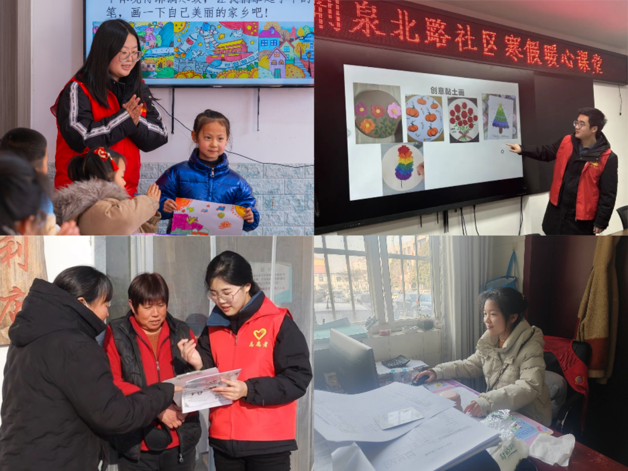 扎根基层,服务社区,让“奉献、友爱、互助、进步”的志愿服务精神在社会中传递,让青年以奋斗者的姿态在社会服务的主战场上建功立业。环境学院团委组织青年志愿者团队在济宁市梁山县通过发放环保知识单页、设置咨询服务台、开展环保科普等方式,把社会实践同自身专业紧密结合,将“创新发展、开放发展、协调发展”的理念深入群众内心。信息学院团委组织“爱心义工队”为泰安市岱岳区社区居民发放新年礼包、清扫院落、破冰除雪,在浓浓年味中传递温情。法学院团委组建“法护黄河青春行,共绘黄河文化韵”生态文明省级实践团队赴东营市进行实地调研黄河口湿地生态区,设立普法摊位,为居民提供法律咨询和宣讲服务,用108个小时为1000人次以上基层社区居民普及《黄河保护法》。自动化学院团委组织青年志愿者赴安徽省宣城市开展“把爱带回家——真情暖童心,相伴护成长”寒假返乡儿童关爱服务,通过阅读领读及作业辅导活动为儿童带去关爱。中德科技学院团委组建“文化进万家”青年志愿服务团队走进滨州市滨城区开展“行走齐鲁·助力研学”、“巾帼送文化”等丰富多彩的文化活动和传统民俗、年俗活动,用实际行动传递传统文化的魅力,丰富了社区群众精神文化生活。数理学院团委组织青年志愿者走进泰安市肥城市社区开展消防安全排查,每天坚持走遍社区大小角落检查消防设施,及时发现并解决安全隐患,有效保障了社区的安全。