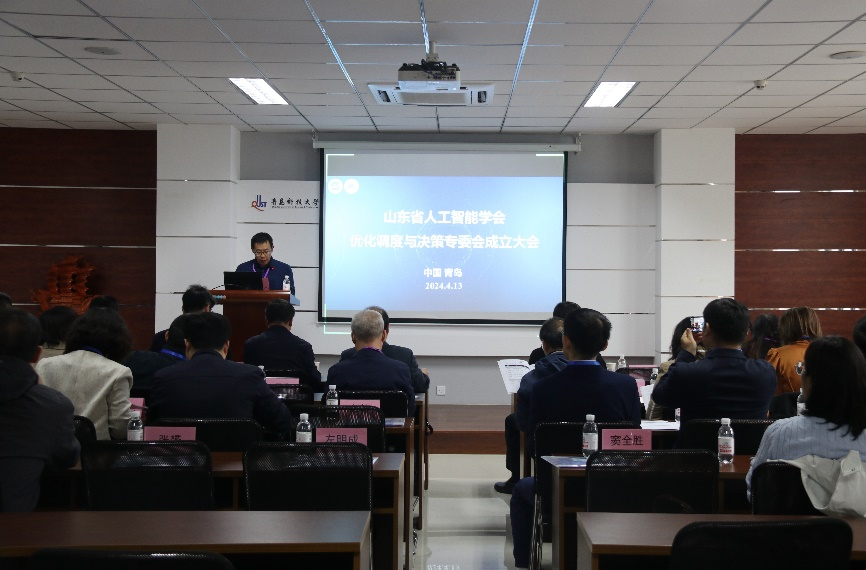 为深入贯彻国家关于人工智能发展的战略规划,发挥省内外专家学者在智能优化、决策支持系统、大数据决策分析等方面的专业优势,推动山东省相关产业升级转型和创新发展,4月13日,山东省人工智能学会优化调度与决策专业委员会(以下简称专委会)成立大会暨学术研讨会在太阳成集团tyc33455cc官网自动化与电子工程学院召开。山东省人工智能学会副理事长、组织工作委员会主任魏本征,江苏省自动化学会智能优化与应用专委会常务副主任徐本连,山东省人工智能学会组织工作委员会委员吕鹏,学校自动化学院常务副院长巩敦卫以及来自全国各地优化调度与决策领域的专家学者共计50余人参加会议。