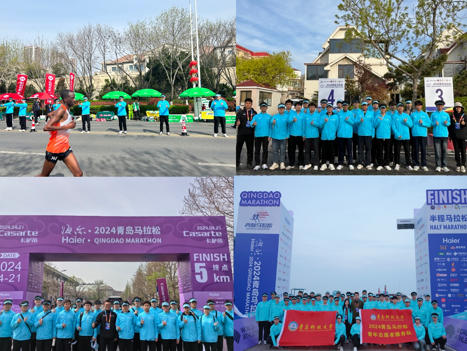 4月21日,海尔·2024青岛马拉松在市南区、崂山区一线鸣枪开跑。校团委公开招募选拔的563名青年志愿者作为赛事服务的生力军,闪耀在长达42.195公里赛道的各个角落,以最美科大青年的青春风貌助力最美青马赛道,用实际行动擦亮“志愿者,找青科”的特色品牌。