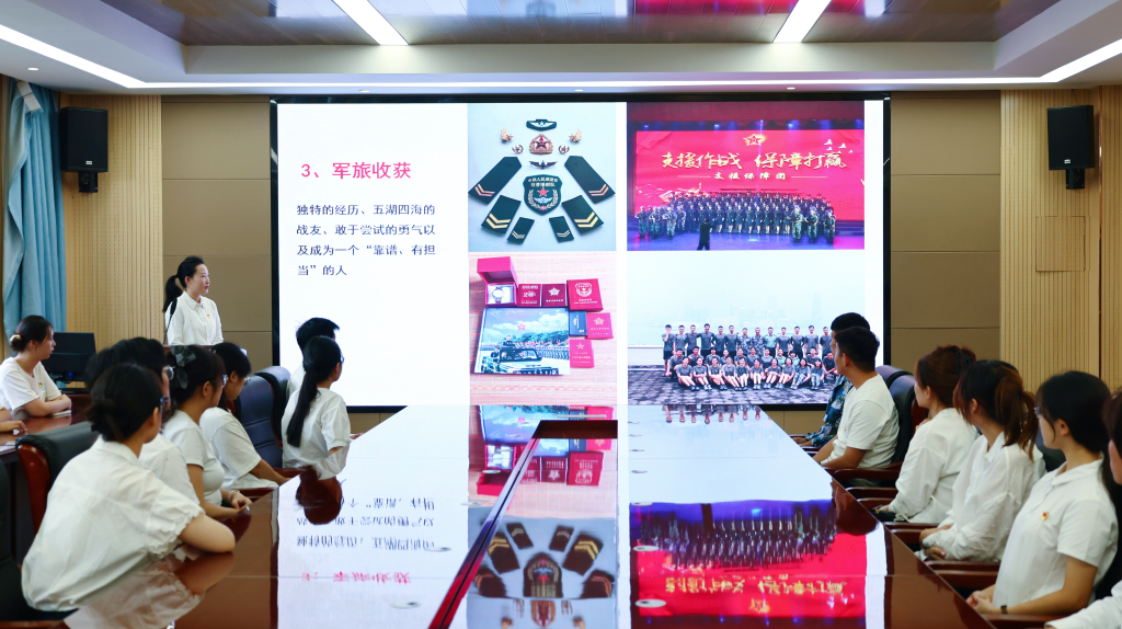 活动中,学院邀请退役士兵党员代表开展“戎光淬志,青春报国”主题分享会。曾服役于中国人民解放军驻香港部队的2024级硕士研究生潘思梦,以“从校园到香江,从迷彩到青春”为题,结合自身经历讲述了军营中淬炼意志、磨砺品格的故事。本科生、2023级退役士兵艾克拜尔·艾海提分享了自己戍守边疆的故事,退伍返校后,他将军人的自律、坚韧带进校园,继续保持着军人的优良作风,续写军人荣光。退役士兵党员代表李天寅从自身服役经历出发,详细解读了大学生征兵政策,重点介绍了经济补助、学业保障、考研升学等优惠政策,并现场解答学生疑问。