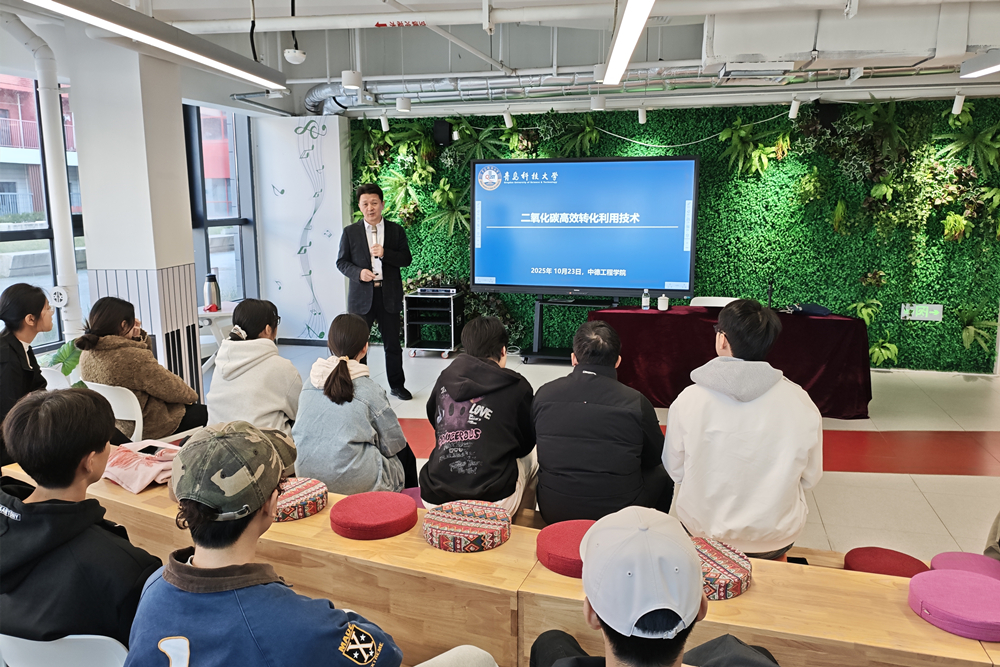 吴明铂以“双碳”国家重大战略与“十五五”规划绿色生态建设要求为核心锚点,围绕二氧化碳加氢高值化利用的战略背景、核心技术与发展规划三大维度,构建起系统性、前瞻性的学术阐释框架,层层展开深度论述。他聚焦二氧化碳加氢制轻质芳烃、二氧化碳加氢制绿色丁二烯两大核心技术,既紧扣碳达峰、碳中和发展前沿,深入解析二氧化碳核心催化机制与技术瓶颈,又结合其主持的国家级、山东省级重点项目,具象化呈现从实验室研究到产业落地的转化路径,同步提出跨学科科研新思路,为师生明确学术方向、明晰技术基础条件提供兼具深度与实用性的学术支撑。