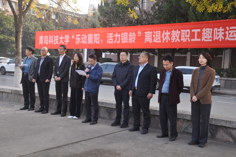 10月28日上午,学校2025年“乐动重阳 活力银龄”离退休教职工趣味运动会在四方校区举行。党委常委、副校长吕万翔出席活动并致辞。离退休工作处处长王泽鹏主持开幕式。