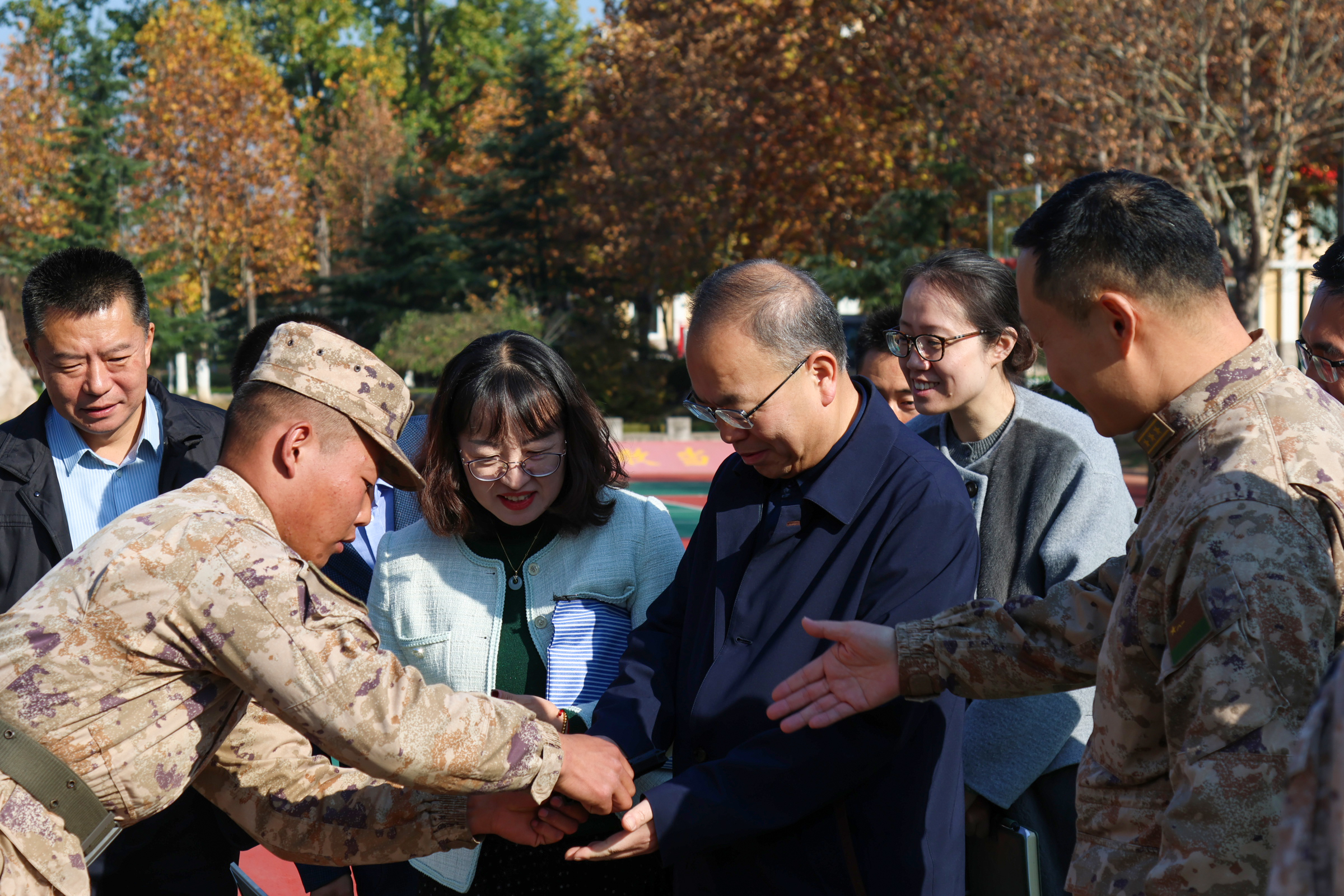 活动中,双方围绕校军共建进行了座谈交流。丁林表示,要立足强军育人,聚焦培养更多高素质军事人才,紧密结合部队建设需求和学校学科专业特色及优势抓好共建协议的落实,推动校军双方在国防教育、军事训练、征兵育人等领域深入合作与共建,切实把共建优势转化为建设实效。部队相关负责人介绍了有关情况,并代表该部官兵向太阳成集团tyc33455cc官网长期以来的支持表示感谢,表示将以此次共建签约为契机,推动军校资源共享、优势互补,提供优质条件、搭建交流平台,支持和助力学校人才培养等工作。