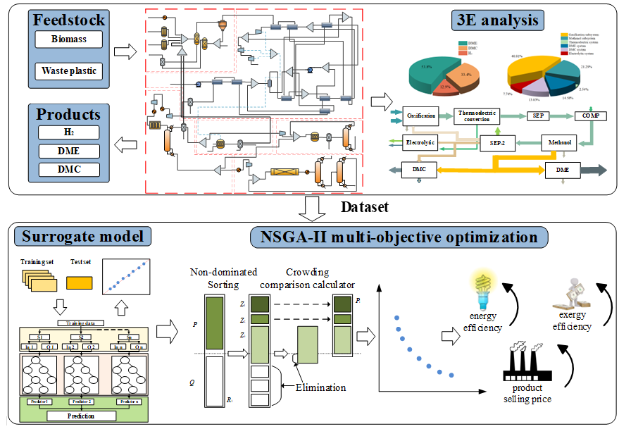 在有机固废资源化方面,团队在Energy与Energy Conversion and Management发表系列研究,提出基于化学链协同气化的多联产系统新方案。该系列研究通过构建集成化学链气化、热电转换及多级化学品合成的系统,实现了生物质与废塑料的协同高值转化,显著提升了合成气品质与系统整体能效。