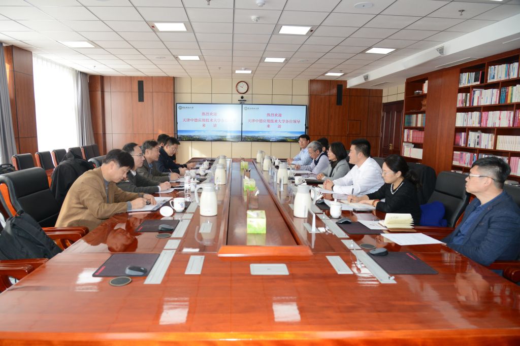 杨天梅向天津中德应用技术大学长期以来对学校的关心支持表示感谢。他指出,天津中德应用技术大学深耕应用技术教育领域,在产教融合、人才培养等方面形成了鲜明特色和突出优势。希望双方能立足国家战略需求,在关键领域深化战略共识,着力构建长效合作机制,推动资源高效共享与优势深度融合,共同谱写携手共进、互利共赢的新篇章。