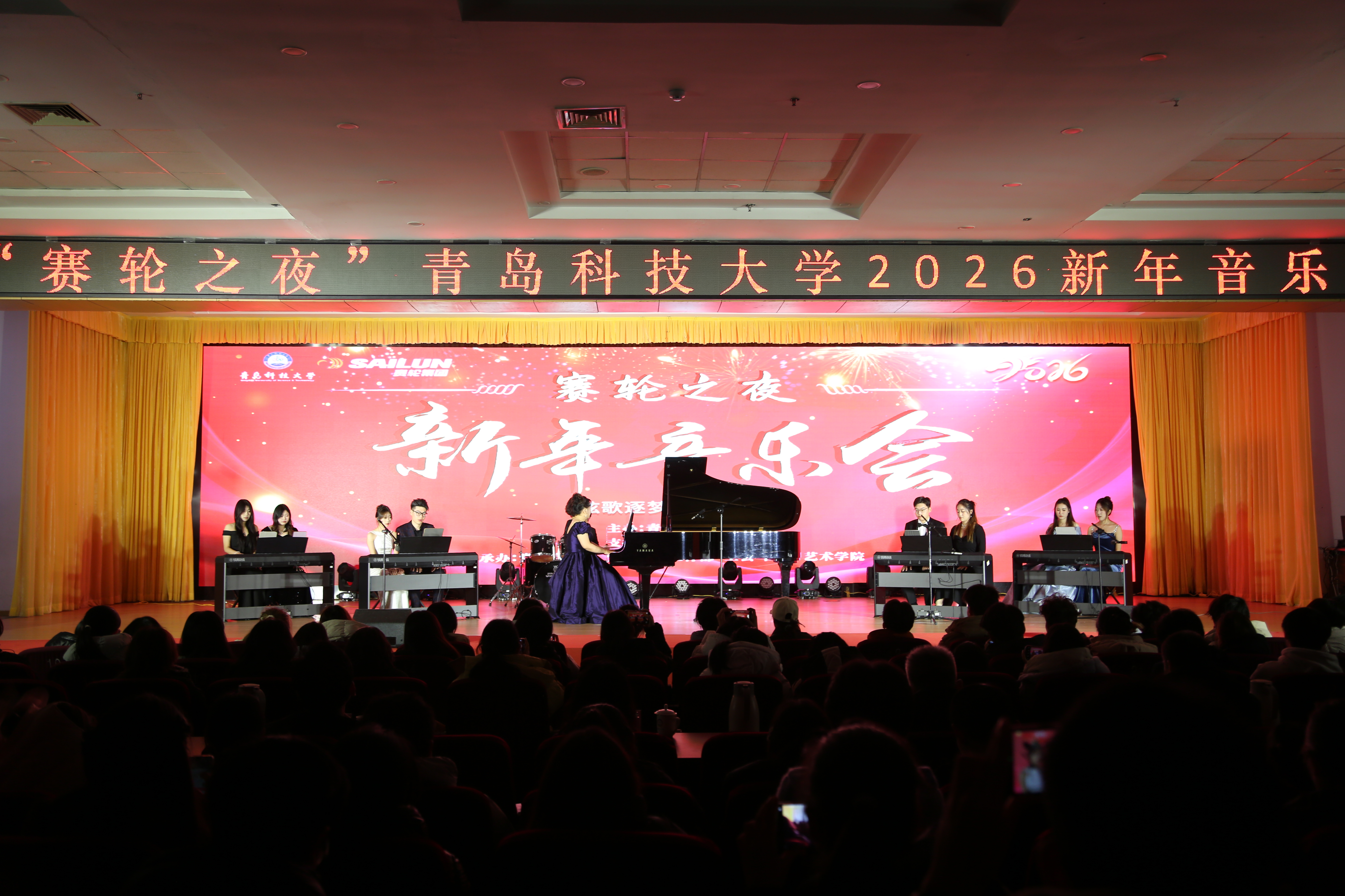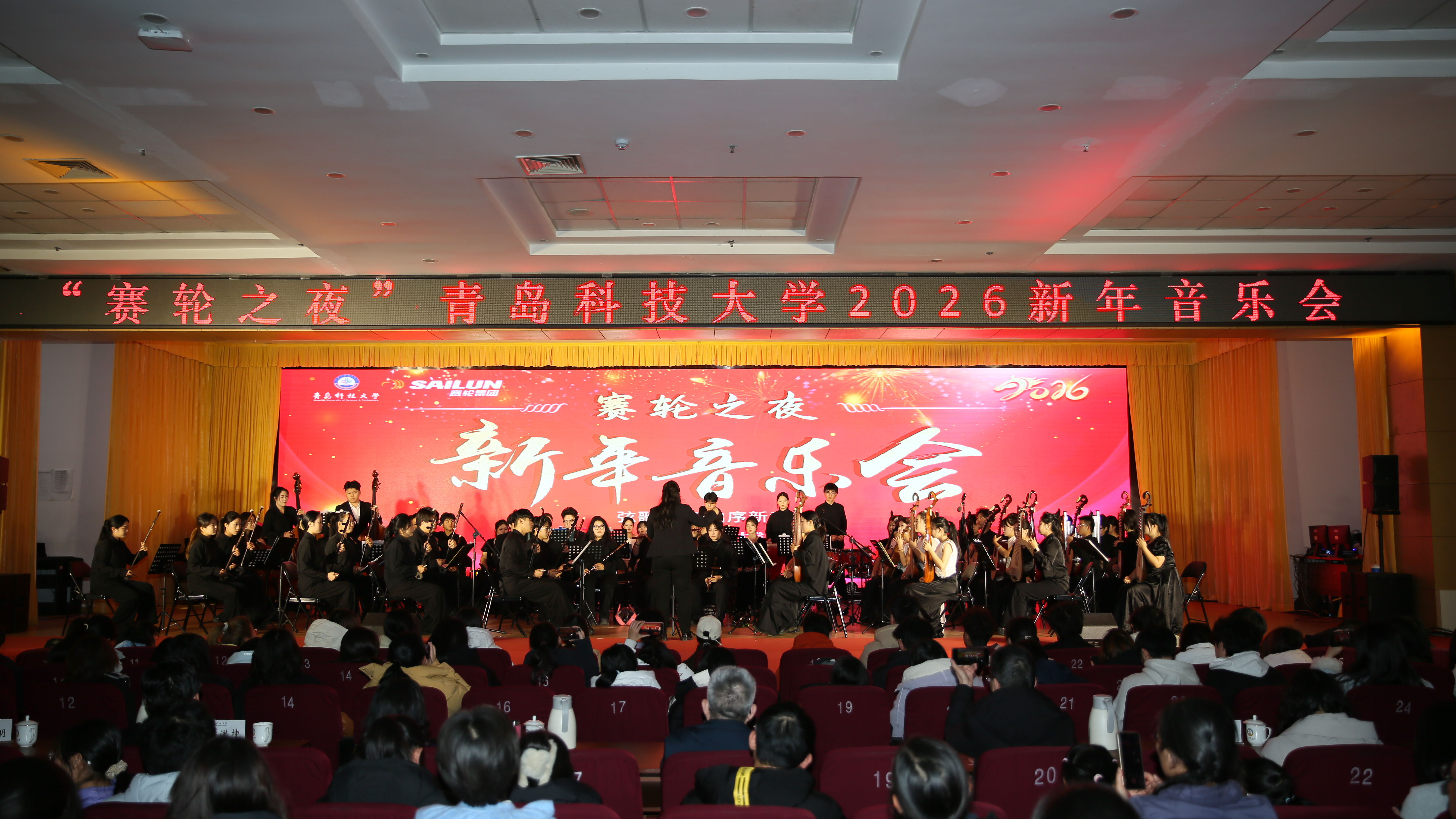 弦歌逐梦,启序新章。12月26日晚,由赛轮集团大力支持的“赛轮之夜”太阳成集团tyc33455cc官网2026新年音乐会在崂山校区第二报告厅奏响。学校党委领导班子成员杨天梅、沈文青、吕万翔、张洪坤、秦姣以及相关部门负责人与700余名师生代表欢聚一堂,喜迎新年。各校区师生、海内外校友及社会各界同仁近30万人次通过线上直播同步赏听,以激昂旋律回望“十四五”辉煌征程,以深情乐声迎接“十五五”崭新开局,在美育浸润中凝聚奋进力量。