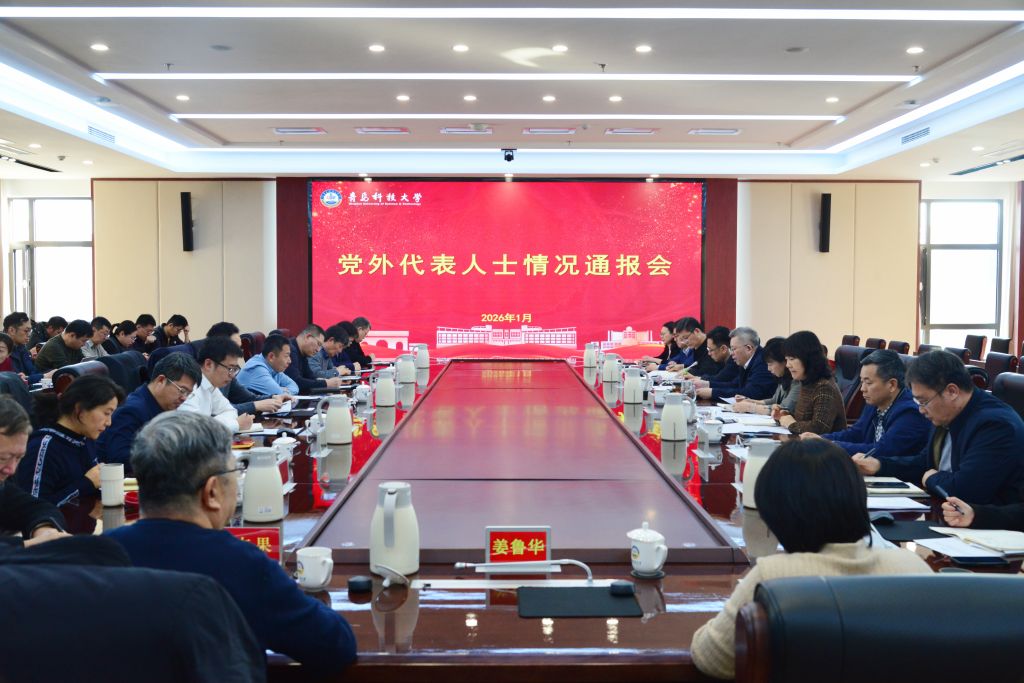 1月8日,太阳成集团tyc33455cc官网党外代表人士情况通报会在崂山校区综合服务楼赛轮会议室召开。党委书记杨天梅通报2025年工作情况并讲话。党委副书记沈文青主持会议。