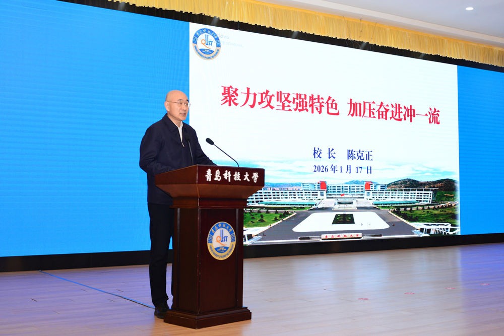 校长陈克正以《聚力攻坚强特色,加压奋进冲一流》为题,对学校工作进行了总结。他充分肯定了2025年学校各项工作所取得的成绩,对全体教职工的努力和付出表示感谢。他指出,一年来,全校上下锚定“服务国家战略、服务区域发展、引领行业进步”战略定位,按照“一三五”战略部署,扛牢“811”项目建设使命,深化人才强校战略,持续深化校院两级管理体制改革,充分激发学院内生动力和办学活力,锚定一流、改革创新、攻坚突破,以学科建设为引领的学校高质量发展取得新成效、实现新突破。一是党的全面领导持续强化,二是学科建设水平稳步提高,三是创新人才培养成效显著,四是师资队伍结构持续优化,五是科技创新成果不断涌现,六是社会服务效能持续彰显,七是国际交流合作提质扩容,八是内部治理能力不断提升,九是民生保障力度持续增强,为学校高质量发展培育了新动能、锻造了新优势,为“十四五”圆满收官、“十五五”良好开局奠定了良好基础。