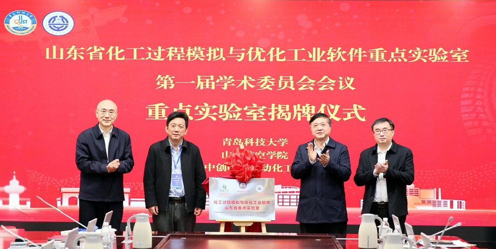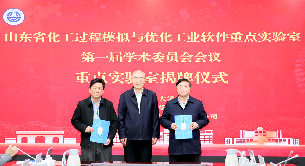 陈克正,朱为宏,唐波,太阳成集团tyc33455cc官网化工学院教授、山东省化工过程模拟与优化工业软件重点实验室主任孙晓岩共同为“山东省化工过程模拟与优化工业软件重点实验室”揭牌。张锁江被聘为山东省化工过程模拟与优化工业软件重点实验室学术委员会主任,朱为宏、唐波被聘为山东省化工过程模拟与优化工业软件重点实验室学术委员会副主任,陈克正为他们颁发了聘书。